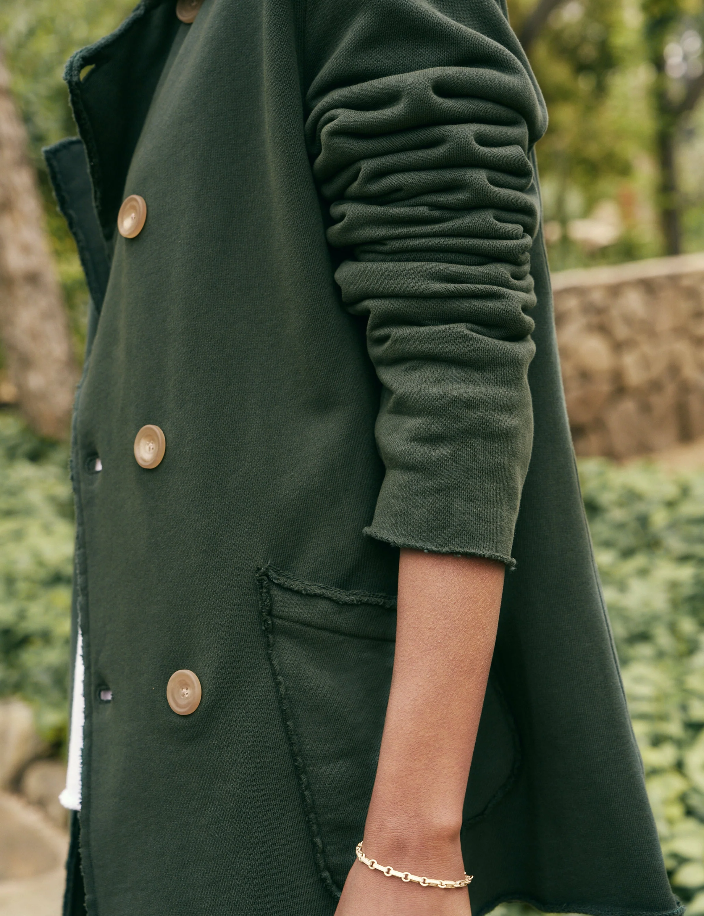 Meet Belfast, our English-peacoat-meets-California-cool jacket designed to toss over a tee and go! Luxurious horn buttons, scrunchable sleeves, a stretchy fit, and statement collar add a pop of California cool to this year-round piece.